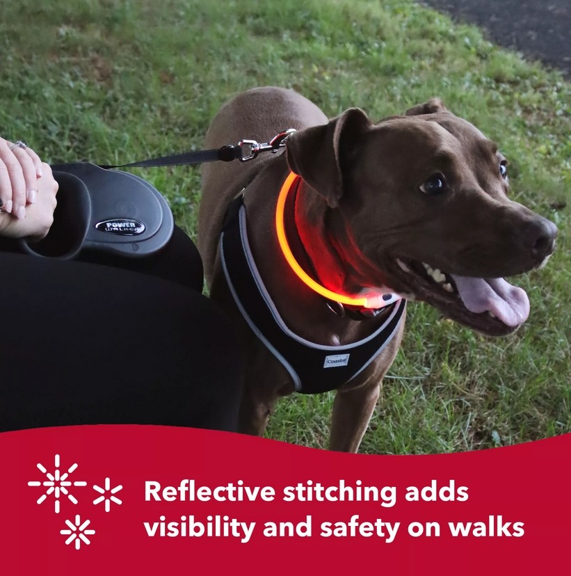 Grant your dog the liberty to roam while maintaining control with the Power Walker Dog Retractable Leash! This versatile leash features a robust all-web construction, ensuring a firm grip on your furry companion while allowing them the freedom to explore. Safety is paramount, and thats why this leash is equipped with reflective stitching, enhancing visibility during low-light conditions and keeping you and your pet secure. Youll appreciate the comfortable grip handle, while your dog will relish the opportunity to frolic without getting tangled up. With its 16-foot tape length, your pup will have ample room to explore their surroundings without feeling restricted. Controlling your dog is effortless thanks to the smooth stop-and-release action of the button. Elevate your daily walks by selecting your preferred color from our range of options and let the Power Walker Dog Retractable Leash be your trusted companion on your next outing with your four-legged friend.