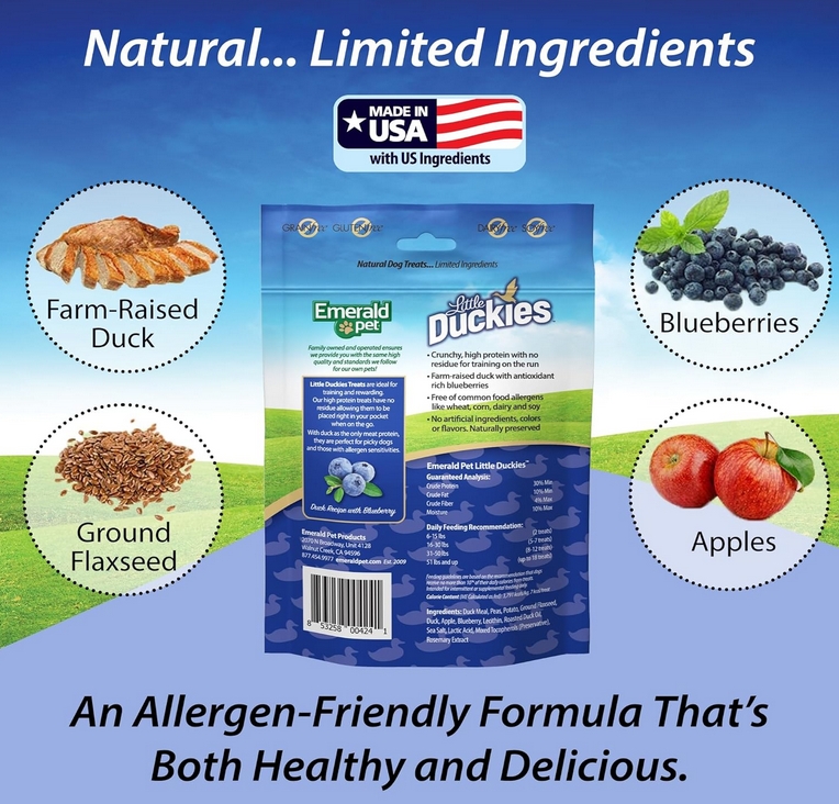 Emerald Pet Little Duckies Dog Treats with Duck and Blueberry