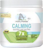 Healthy Promise Calming Soft Chews for Dogs are created to soothe and pacify pets in tense situations. Many dogs feel stress in situations such as fireworks, thunderstorms, long-distance travel, or grooming sessions. Thats why these liver-flavored chews feature a 7x Super Blend with ingredients including L-Tryptophan to support the stress response, Chamomile Flower, and Ginger Root Extract to help keep their stomach settled. The blend adds other key ingredients including Melatonin, Salmon Oil, and Rosemary Extract. Plus, these calming aids for dogs are made with BioPerine, which is shown to support the absorption of ingredients. Healthy Promise supplements proudly carry the National Animal Supplement Council (NASC) Seal, which is earned for complying with stringent quality control standards and much more. Add Healthy Promise USA-made supplements to your furry friends daily routine and live Happier, Healthier, and Stronger together!.