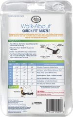 Four Paws Quick Fit Muzzle For Dogs helps stop biting, barking, and chewing, but allows panting and drinking. Its made of strong nylon and is completely washable. The walk-about quick fit muzzle doesnt have a lot of buckles that always need adjustments. Only one initial fitting is needed.
