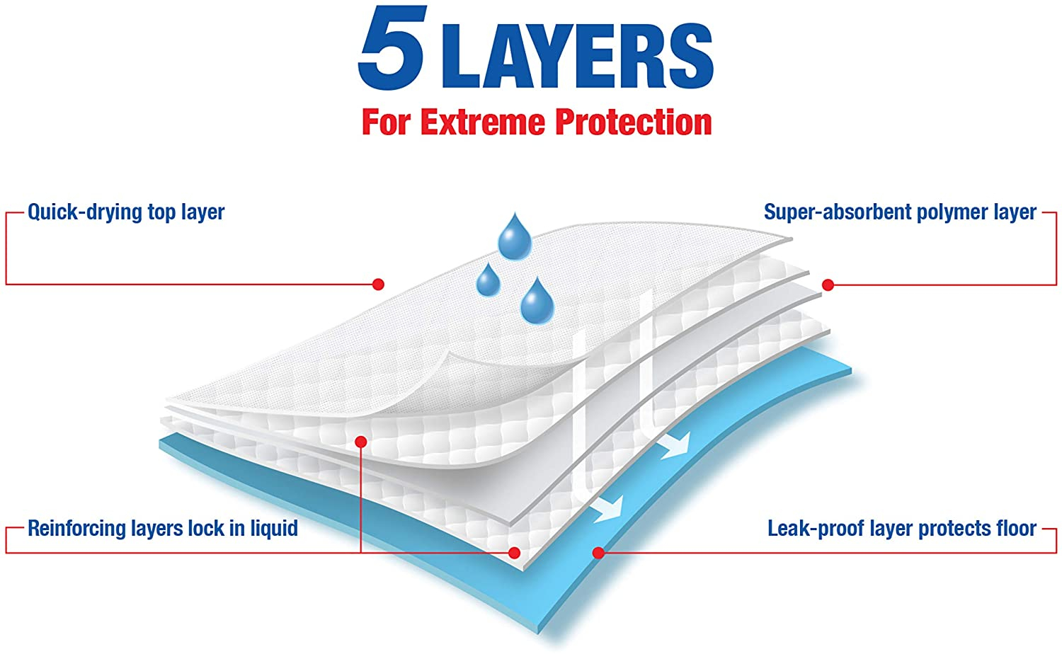 Super Absorbent Wee Wee Pads are designed with your home in mind. A quilted top layer locks in wetness, while a leak proof backing protects floors and carpets. 2 moisture-locking layers ensure maximum absorption power.