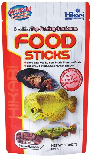 Hikari Food Sticks for Tropical Carnivorous Fish are a complete, nutritionally balanced formulation, developed for carnivorous fish whose main diet of live food tends to cause nutritional deficiencies. Using Hikari Tropical Carnivorous Sticks instead of live foods reduces the chance of infection from parasites or bacteria found in most live foods.