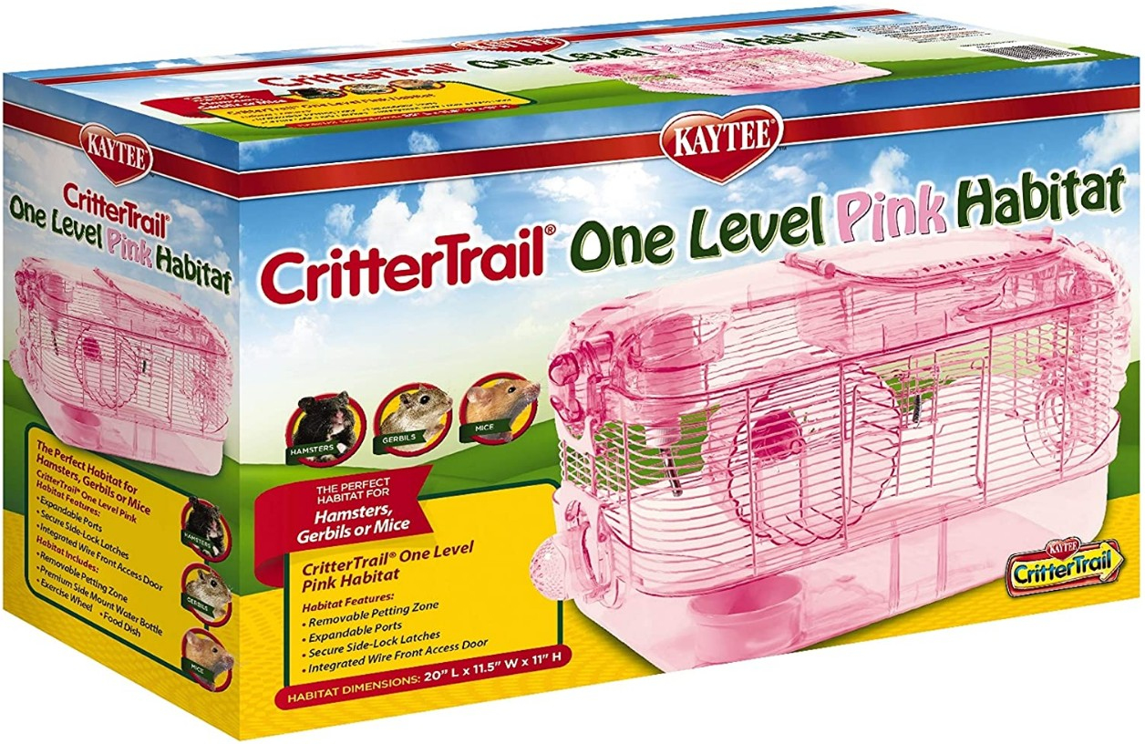 Kaytee CritterTrail One Level Habitat Pink Edition is for all hamsters, gerbils, and mice. Removable Petting Zone allows for easy interaction and is a safe resting location.