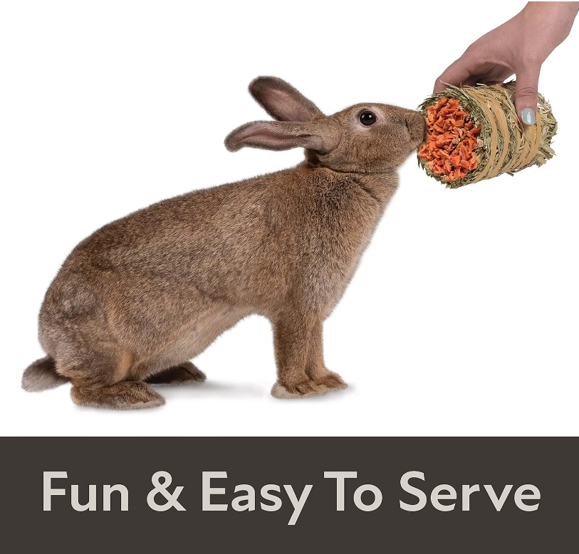 Field+Forest Mini Hay Bales are made with long strand Kaytee timothy hay and topped with carrot or marigold for a fun and convenient way to treat your pet. All-natural, high fiber timothy hay makes this a healthy part of your pets feeding routine. Each added topping adds variety and foraging opportunities. Offer your pet Field+Forest Mini Hay Bales for an enriching and nutritious experience.