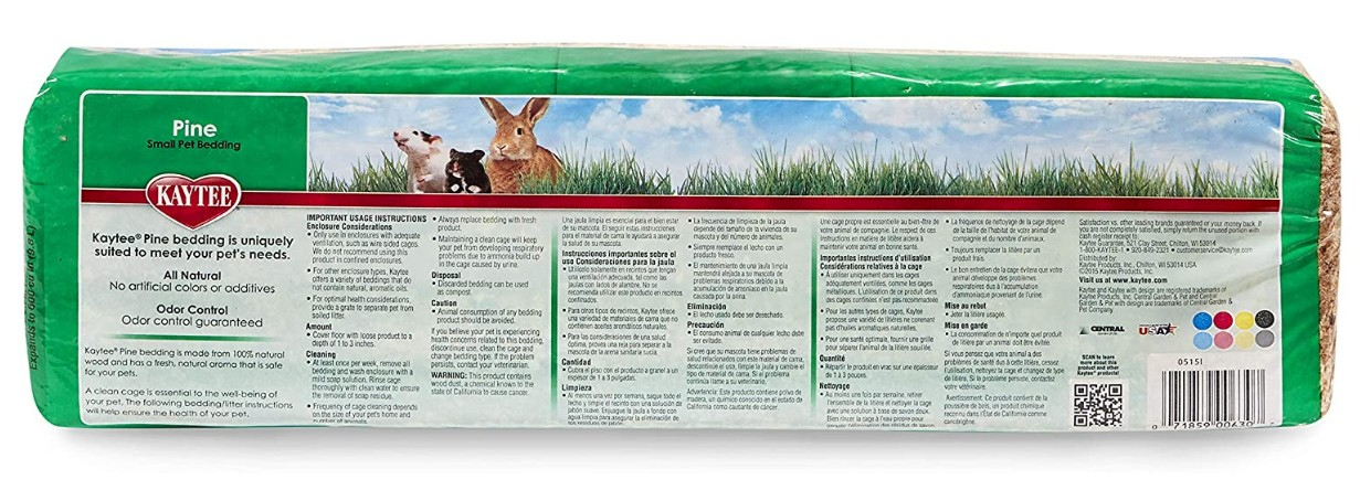 Kaytee Pine Bedding and Litter is made with all natural pine shavings and is specially processed to help eliminate dust and wood debris that is commonly found in other pet bedding.