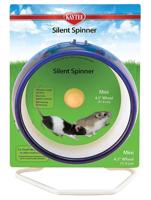 Kaytee Silent Spinner is the wonderful, whisper quiet workout wheel for your furry friend. Patented ball bearing technology makes these wheels super silent while your small pet gets the healthy, stimulating exercise it needs.