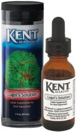 Kent Marine Lugols Solution provides a strong source of free iodine and iodide to reef inhabitants and macroalgae. Although its very effective when used with stony corals, systems containing xenia and soft corals are particularly benefited by the use of Lugols Solution.