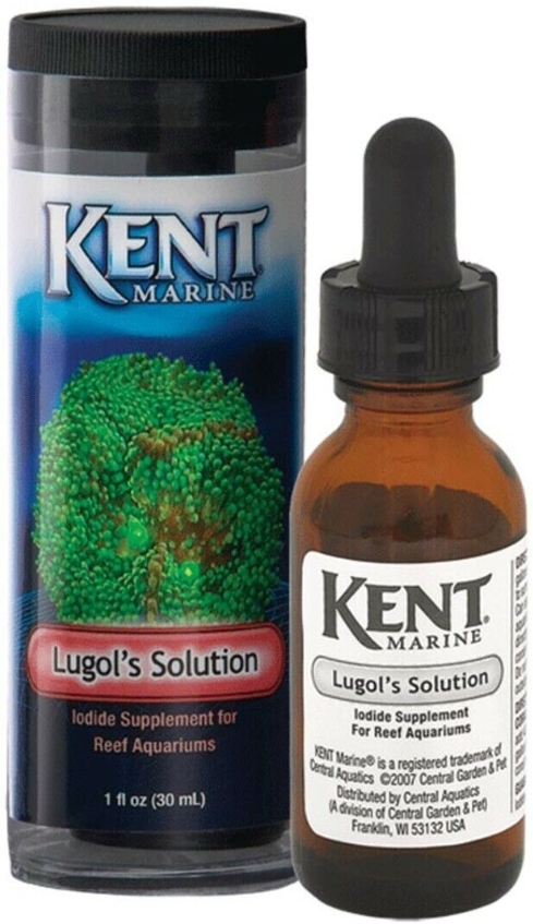 Kent Marine Lugols Solution Iodide supplement for reef aquariums provides a key nutrient for marine invertebrates and fishes while promoting coral polyp expansion. Improves colorations and prevents bleaching of corals. Can be used as a dip for stony and soft or leather corals.