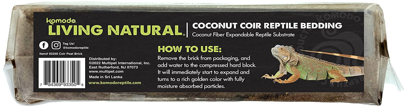Komodo Coconut Coir Peat Reptile Bedding Bricks give your pets a healthy, comfortable, and naturalistic environment to live in. 100% natural, any foreign materials are removed through the max-washed process.