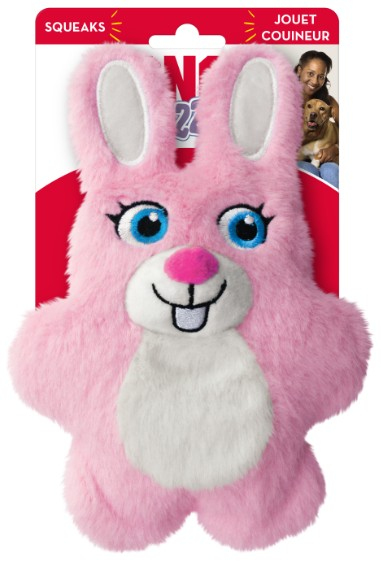 KONG Snuzzles Bunny is plump full of fun with a full body squeaker that calls out with a long, loud squeak. The dense mouthfeel rewards appropriate chewing with every bite.The super soft plush invites soothing snuggles. Ideal for indoor fun, the flat shape is ideal for small dogs to grab.