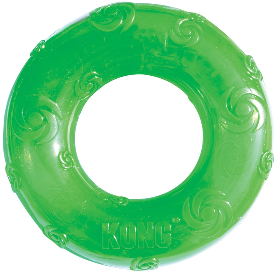 KONG Squeezz Ring Dog Toy provides hours of safe fun for your dog. Whereas most squeaky toys are easy to destroy or puncture, the KONGs Squeezz Ring Dog Toy features a completely safe, durable non-toxic rubber.