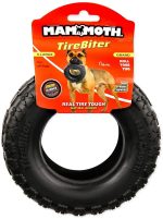 Mammoth TirebiterII toys are made from a NEW advanced natural rubber formula for EXTRA long lasting play. Designed and developed in the USA and sustainably manufactured in our North American factory from USA materials the Tirebiter II toys are made using a progressive chew system whereby as the the size is made larger they will exponentially gain strength. Perfect for your dogs different growth stages. Pound for pound Tirebiter II is the toughest dog toy available. These real-tire-tough favorites are excellent for interactive playing, tossing and tugging by creating hours of positive play experience between dog and owner.