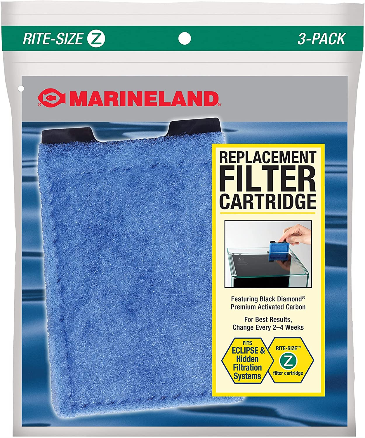Marineland Eclipse Filtration Systems filter cartridges are designed for optimal performance and incredible ease of use. Rite-Size Z cartridges feature Marinelands Black Diamond Premium Activated Carbon for excellent mechanical and chemical filtration.