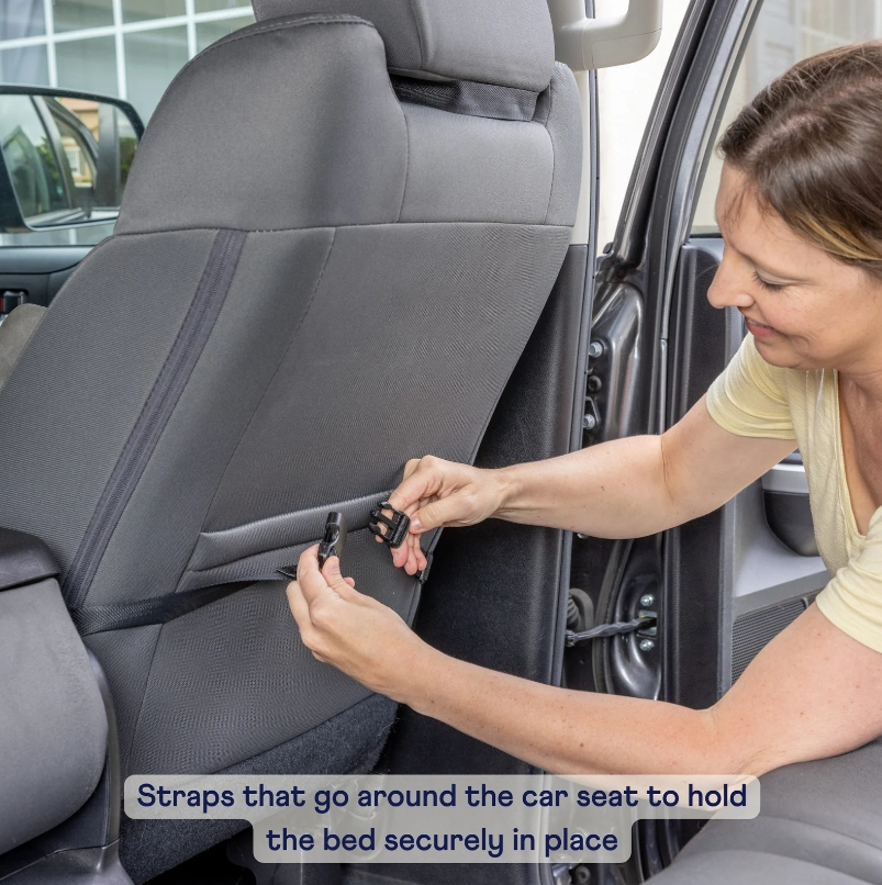 • Safe: Attached seat belt leash straps that can attach to the dogs harness, adjustable straps that go over the headrests and loops on the back of the bed where the car seatbelt slips through to hold the bed securely in place