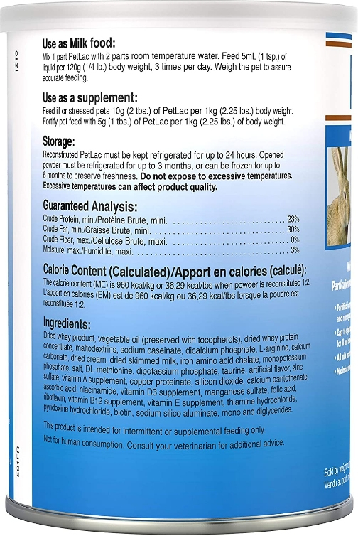 PetLac contains no soy protein, only milk protein of the highest nutritional value. PetLac may be given like mothers milk to the infant and as a supplement to the adult.