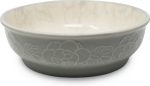 This food-grade ceramic dish is embellished with a subtle floral pattern that adds sophistication to your pets dining area. The neutral gray color complements most home decor and is dishwasher safe.