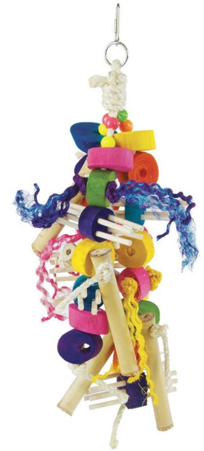 • Offers birds a variety of chomping, chewing, grabbing, and swinging activities