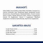 Ingredients: Yellow Millet, Ground Wheat, Black Millet, Red Millet, Cracked Corn, Calcium Carbonate, Oats, Dehydrated Apple, Dehydrated Carrots, Corn Starch, Peanut Crumbles, Dehydrated Dates, Calcium Propionate (a Preservative), Honey, Lecithin, Color Added (Yellow 5, Yellow 6), Vitamin A Supplement, Vitamin D3 Supplement, Vitamin E Supplement, Riboflavin Supplement, Pyridoxine Hydrochloride, Vitamin B12 Supplement.