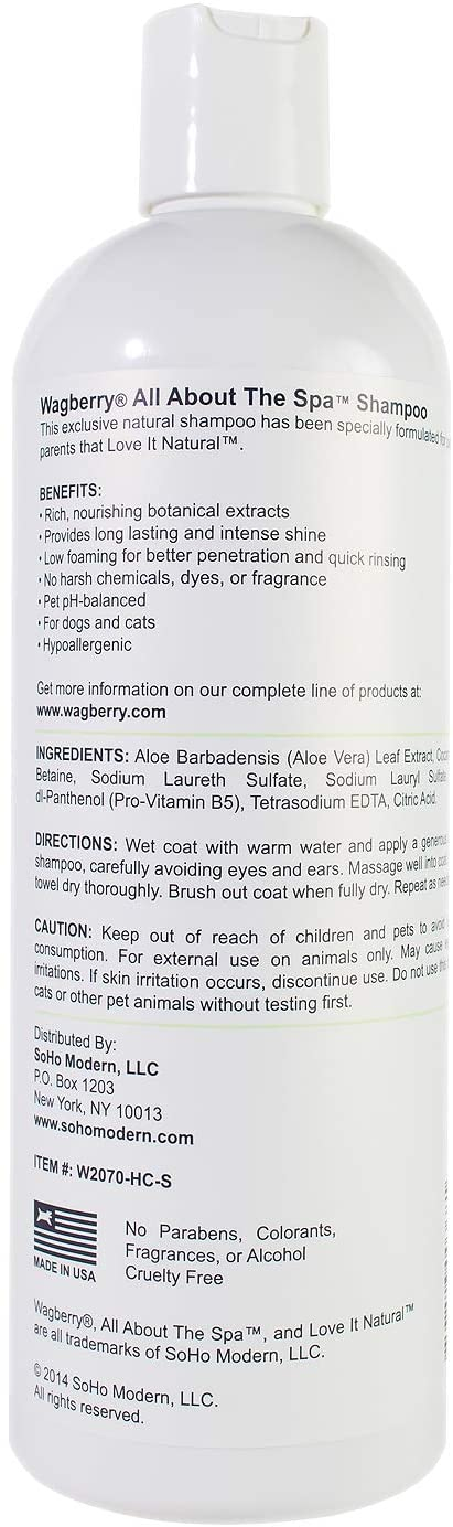Pamper your pet with a luxurious shampoo that gently cleanses and nourishes their coat while increasing smoothness and shine. Specially formulated for pets and pet parents that Love It Natural. Its enriched with an exclusive blend of botanical extracts such as Aloe Vera and Pro-Vitamin B5 that instantly soothes skin and keeps hair healthy. Plus, its hypoallergenic and safe for even the youngest puppy. No harsh chemicals, dyes, or fragrance. Suitable for all breeds of dogs and cats. Made in the USA.