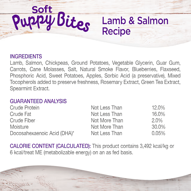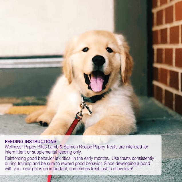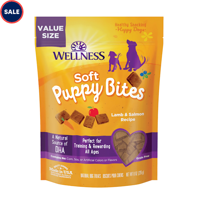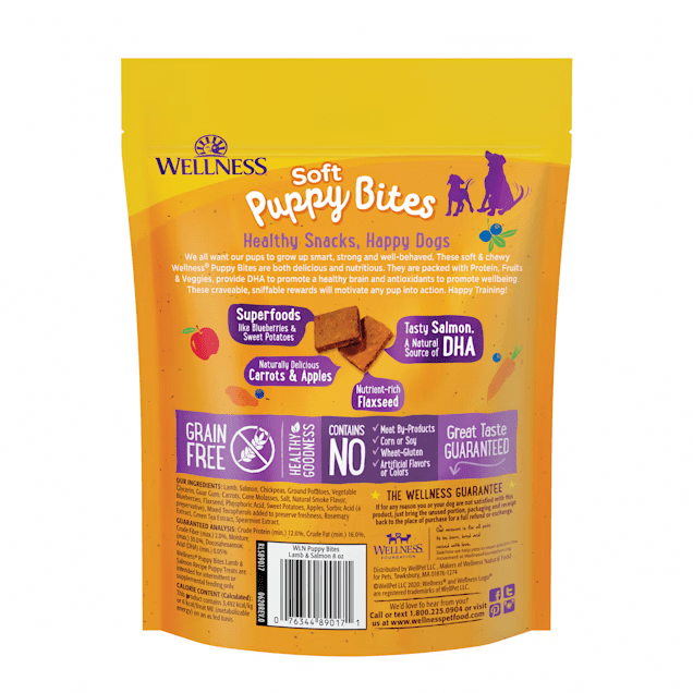 Wellness Natural Grain Free Soft Puppy Bites Dog Treats are wholesome, all natural, soft, tasty, grain free bite-sized dog treats. Made in USA only and specially formulated for puppies under 1 year!