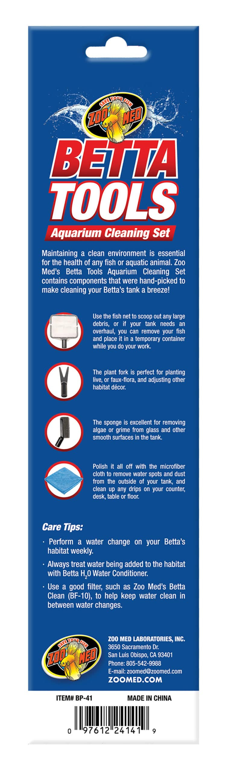 Maintaining a clean environment is essential for the health of any fish or an aquatic animal. Zoo Meds Betta Tools Aquarium Cleaning Set contains components that were hand-picked to make cleaning your Bettas tank a breeze!.